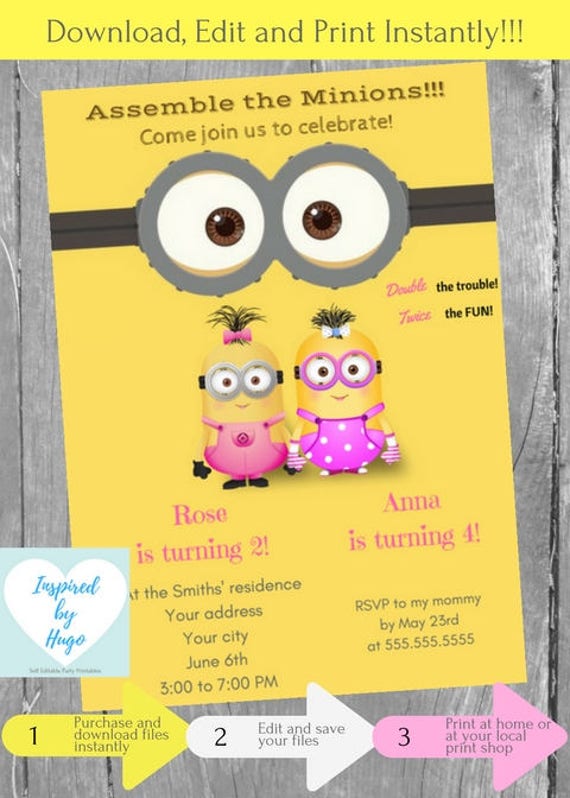 Customize it using adobe acrobat or reader. Click here to browse the available invitations and edit it online with drevio canvas. After that the invitation can be printed using the final customization. Download free printable minions birthday invitation templates updated.