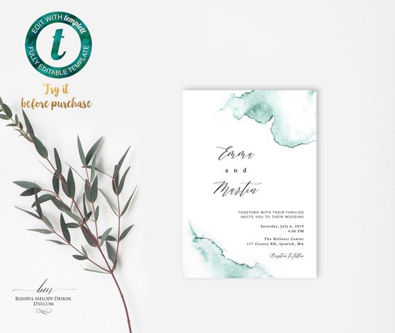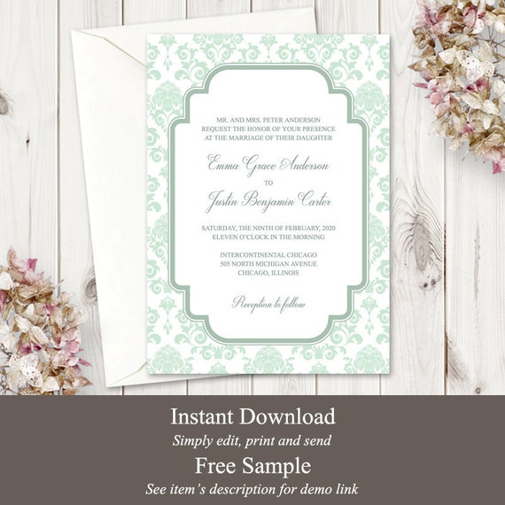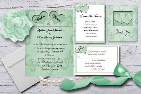 Editable mint green wedding invitation template. Available in 4x6 5x7. Our collection of discount green colored wedding invitations include pale shades of sage to vibrant hues of lime. Check out the editable invitations in microsoft word right here. Free wedding invitation template green set.