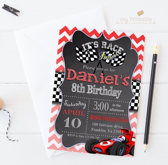 Printable Race Car Boy Birthday Invitation Template Boy Birthday Party Invitation Party Invite Template Car Birthday Party Invitations Race Car Birthday Party