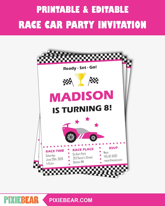 Race Car Invitation Printable Go Kart Invitation For A Racing Party Pink Race Car Birthday Invitation For Kids Instant Download Pdf By Pixiebear Catch My Party