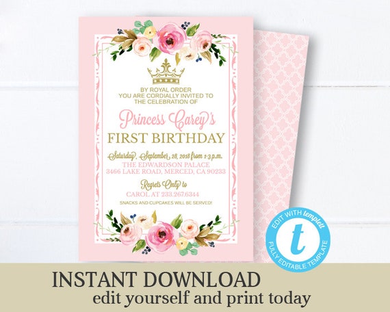 Editable royal birthday invitation template free. Download free printable royal princess party invitation templates. Theyre highly customizable which means you can take the template load it in the dashboard and find the right tools to add a personal touch to your invitation. 1 letter size editable pdf with 2 64 invitations 1 letter size editable pdf with 2 75 invitations how to use to customize this template you must have the latest version of acrobat reader installed but no worries its free. Available in 4x6 5x7.