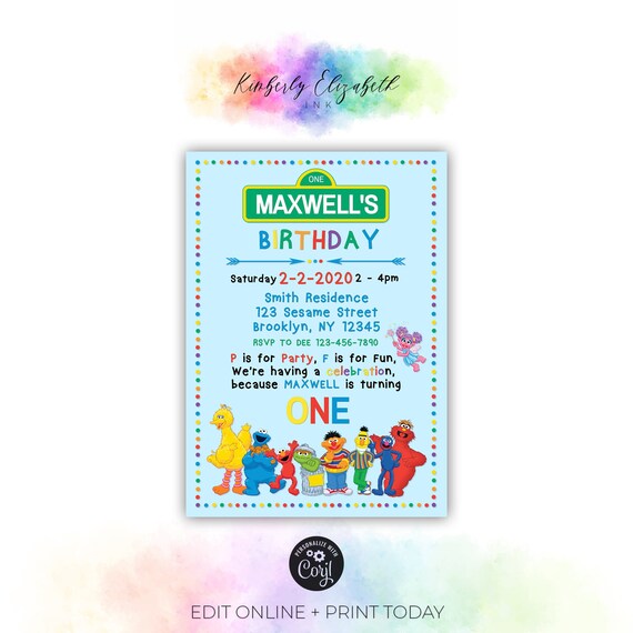 Editable Sesame Street Birthday Invitation Sesame Street Etsy