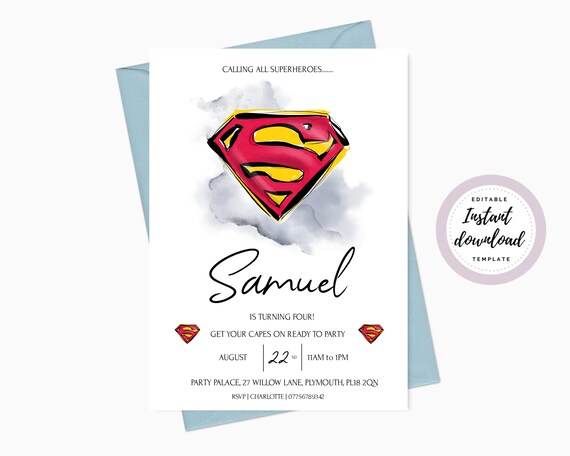 Editable superman birthday invitation template. Save print and copy all templates such as the water bottle label hat and cupcake topper. Customize superman themed invitation freely. Editable invitations are perfect for. If you feel like adding a tagline to the invitation or spicing it up with.