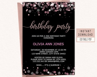A party is the perfect way to express your friendship or affection for the birthday honoree. Editable rose gold 35th birthday invitation elegant 35th invitation surprise birthday party 35th birthday invite female adult birthday. Printable invitations by canva whether youre out to throw a bridal shower a graduation party or just looking for any excuse to party youll definitely want to create an attractive and custom made invitation to excite all your guests and have them look forward to the bash. Apple mac pages microsoft publisher adobe illustrator ai.