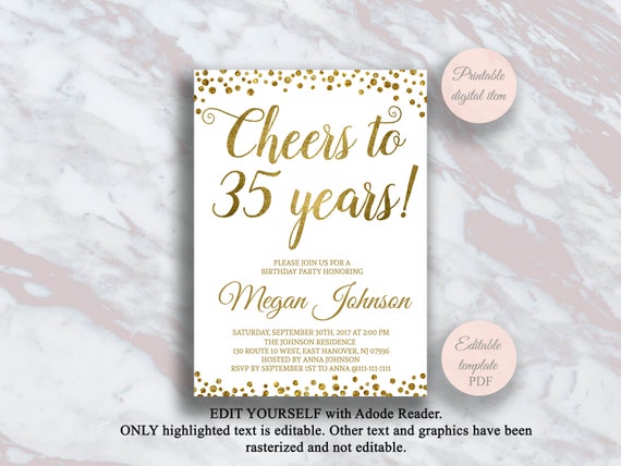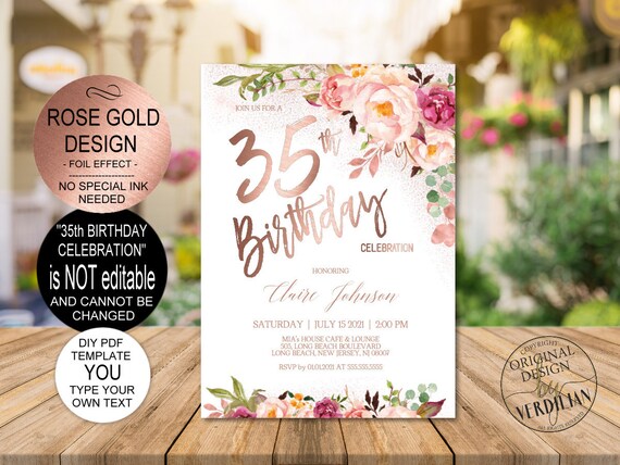 All our invitations are free to download electronically or print from our. Diy 35th birthday invitation template blush rose gold floral birthday celebration for women diy printable pdf instant downloadvrd535gsr. Easily editable printable. Instantly download free elegant birthday party invitation template sample example in microsoft word doc adobe photoshop psd adobe indesign indd idml apple pages microsoft publisher format.