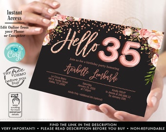 With our variety of designs for every party theme customizable text and fonts you can fine tune your invitation to keep the secret of a surprise ask for charity donations in lieu of gifts include parking instructions whatever will keep your event on track. Flamingo birthday template girl birthday invitation elegant flamingo invite editable. Your next party or event is important so let zazzle help you find the perfect 35th birthday invitations and leave you with more time to plan for the big occasion. Editable electronic rose gold 35th birthday invitation elegant 35th invitation surprise birthday party 35th.