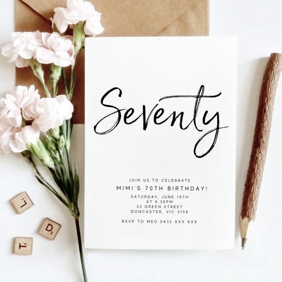 Click here to browse the available invitations and edit it online with drevio canvas. Invite friends and family to a birthday open house or host a. Celebrate your septuagenarian with a party they will love to remember long after the sun sets on their special day. All occasions customize with your own details and age.