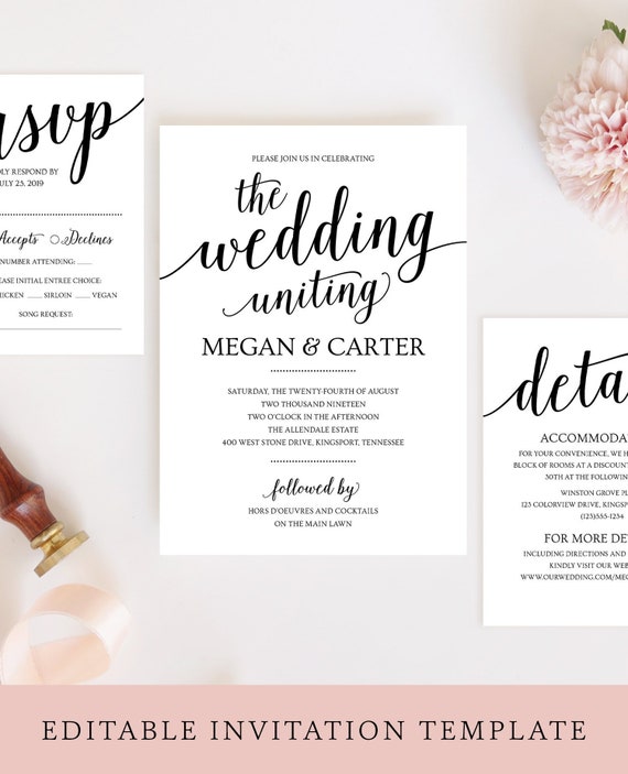 Elegant Wedding Invitation Bundle Monogram Wedding Invitation Template Printable Wedding Invitations Fine Art Serenity By Elmwood Paperie Catch My Party