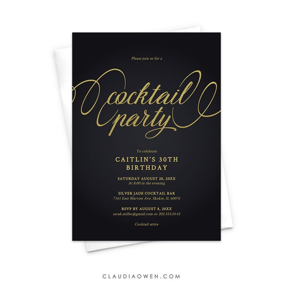 In the most general sense a cocktail party is an organized party where most people would socialize with one another while standing as they eat appetizers and drink cocktails. Modern and sophisticated cocktail party invitation features in black and gold with elegant typography. Create elegant gold cocktail party invitation. Check out this watercolor inspired invitation template that you can use for gathering attendees to a cocktail party.