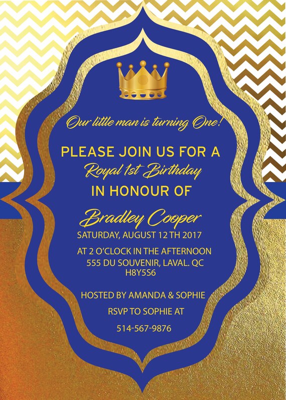 Royal Prince Birthday Invitation Royal Blue Gold First 1st Birthday Party Invite Crown Prince Invitation Gold Crown Any Age Rbg1 By Blue Bunny Printables Catch My Party