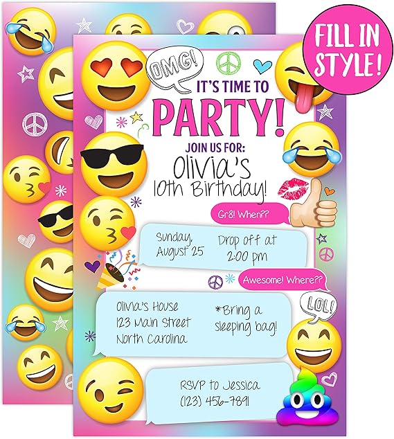 On one invitation we left the blue responses so that you only have to write the party information into the text bubbles. When you are of a tight budget handmade birthday party invitations would be perfect. Grab any one of these free printable emoji party invitations to help you out. This invitation is designed like a smart phone screen with people chatting about the party details.