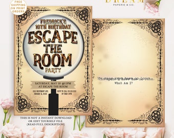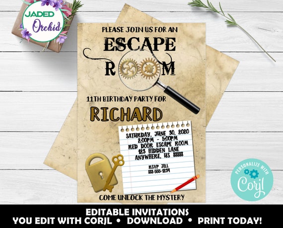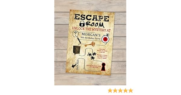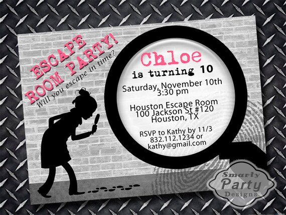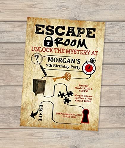 Invitations for escape rooms. 5 out of 5 stars 570 570 reviews 690 free shipping favorite add to. Party invitations kids online invitations unique invitations printable birthday invitations birthday party at home 9th birthday escape room for kids creative names birthdays. For a fun game that you can print at home and play today and also customize with the birthday childs name or party guests names and even design your own clues and codes to help solve the puzzle and escape then be sure to check out these awesome print at home escape room games from lock paper scissors this is an affiliate link.