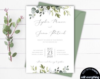 Greenery Wedding Invitation Suite Greenery Wedding Invitation Template Eucalyptus Wedding Invite Printed Greenery Instant Download By Announce It Catch My Party