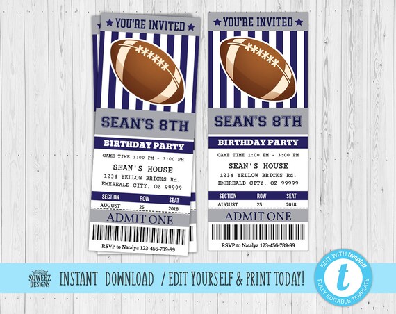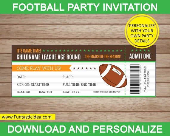 Our baseball football hockey soccer themed invitations feature a variety of sports and games and all can be personalized with the details of your event in a font you choose. And buy this football table cloth here for just a few dollars and then throw these cheap paper straws into the mix. Searching for another sports themed invitation or just planning the pre game. Football ticket invitation template free.