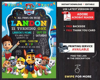 There are some special paw patrol templates available specially designed for girls who like the show. Click here to browse the available invitations and edit it online with drevio canvas. Prints 2 per page each approximately 5 x 6 inches or 127 x 152 cm. Follow these step by step instructions to create your own personalized paw patrol birthday invitation in chalkboard style.