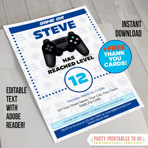 Playstation Birthday Party Invitations Template Blue Party Invite Template Video Game Party Invitation Playstation Party