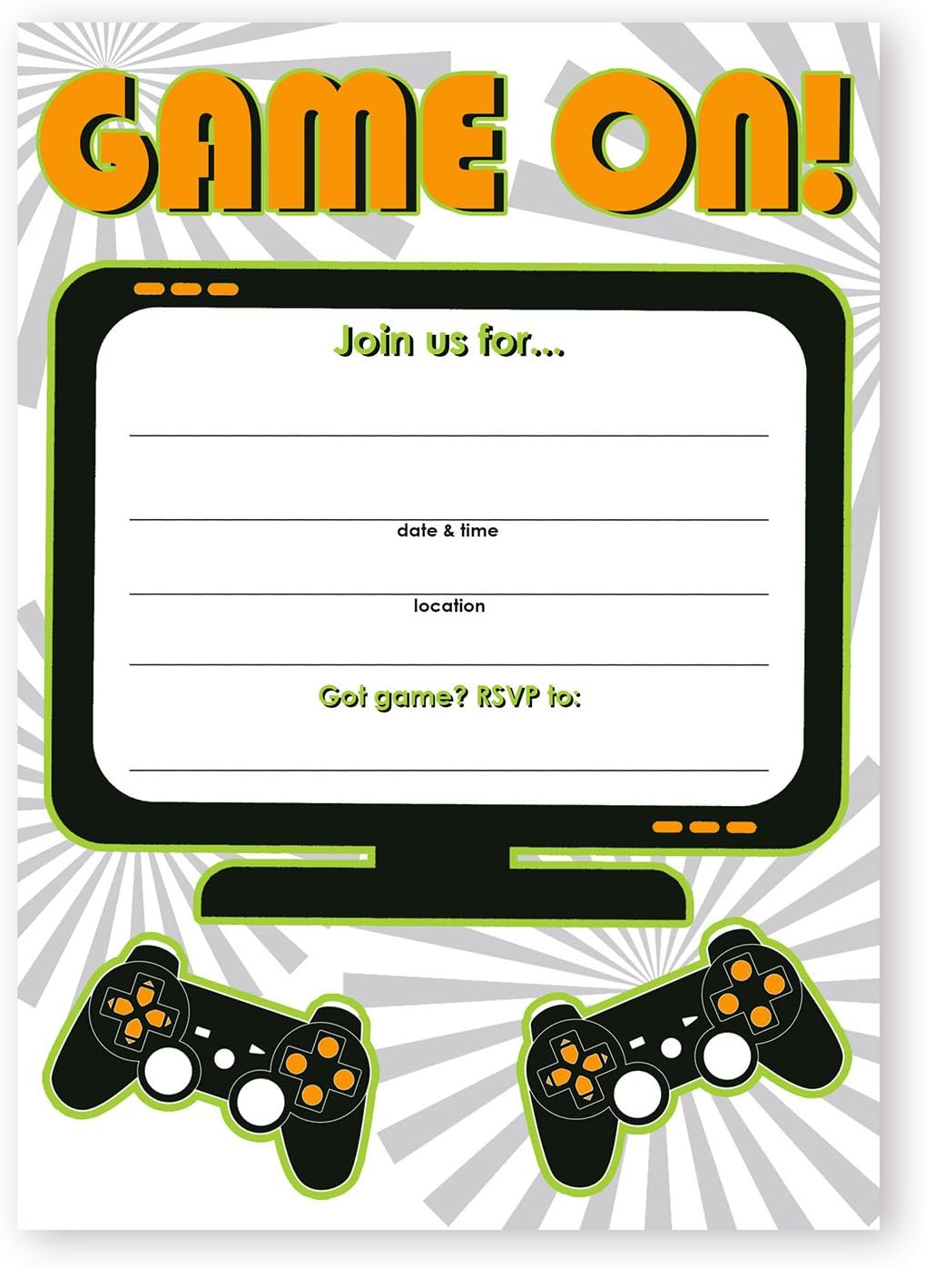 Amazon Com Pop Parties Gaming Party Large Invitations 10 Invitations 10 Envelopes Toys Games