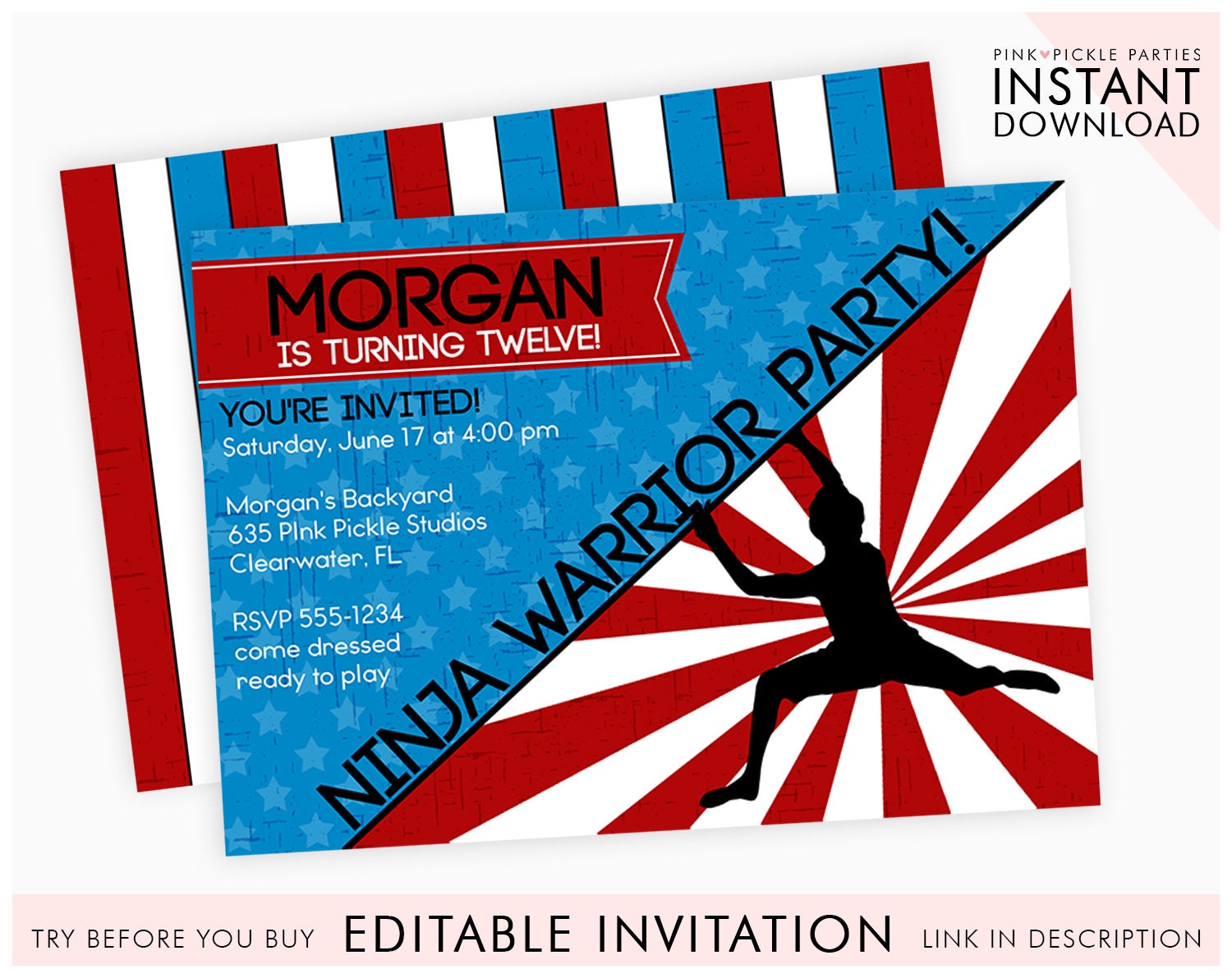 Free printable ninja warrior birthday invitation template free. Ninja warriors birthday invitations birthday printable from ninja warrior birthday invitation template free. American ninja warrior invitations american ninja by in ninja warrior birthday invitation template free ninja warrior birthday invitation template free playing cards for birthday events are available out there. Once this is complete simply send invites out to guests. Ninja warrior birthday invitation template free allowed to help our blog within this moment i am going to show you with regards to ninja warrior birthday invitation template freeand today this is actually the primary sample photograph.