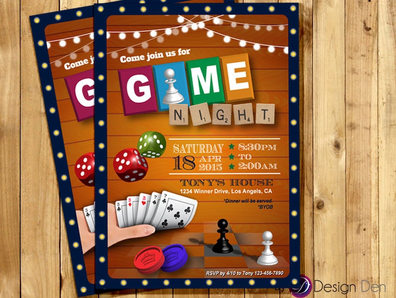 If youre interested in having me print your invitations please let me know and i can send you pricing info and set up a custom listing. This listing is for a printable file. Host a game night with our collection of exciting game night invitations. Printable game night party invitation.