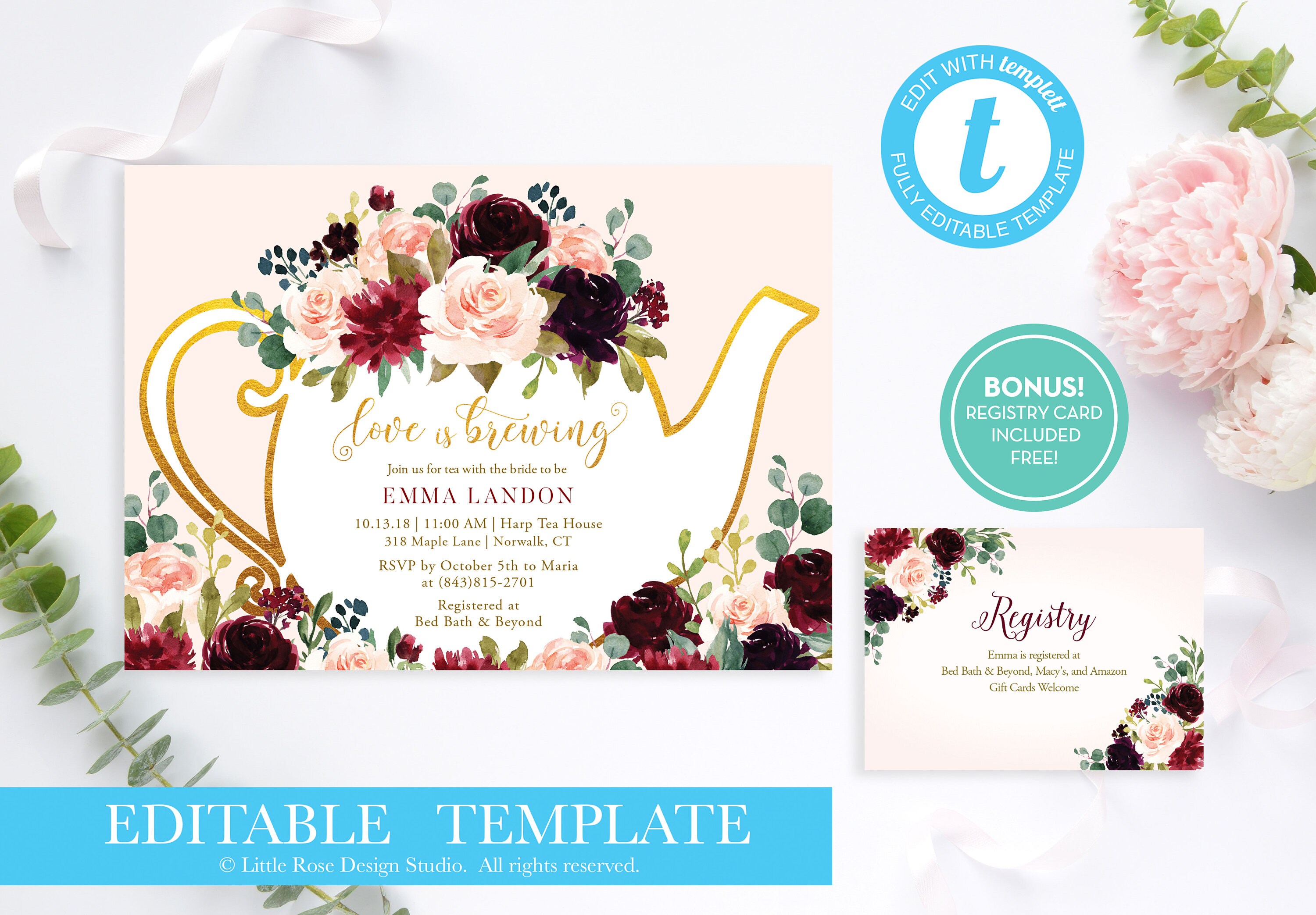Easily editable printable. Use these tea party invitation designs that can make your party appear unique to people the moment they get the invitation. Event management and rsvp tools are at your service to keep your tea party details in good order. Easy to print bridal shower tea party invitation.