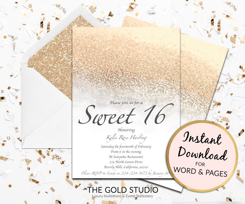 Download free printable glitter gold invitation templates. Create rose gold glitter birthday invitation. See more ideas about glitter birthday parties birthday party invitations glitter birthday. Click here to browse the available invitations and edit it online with drevio canvas.