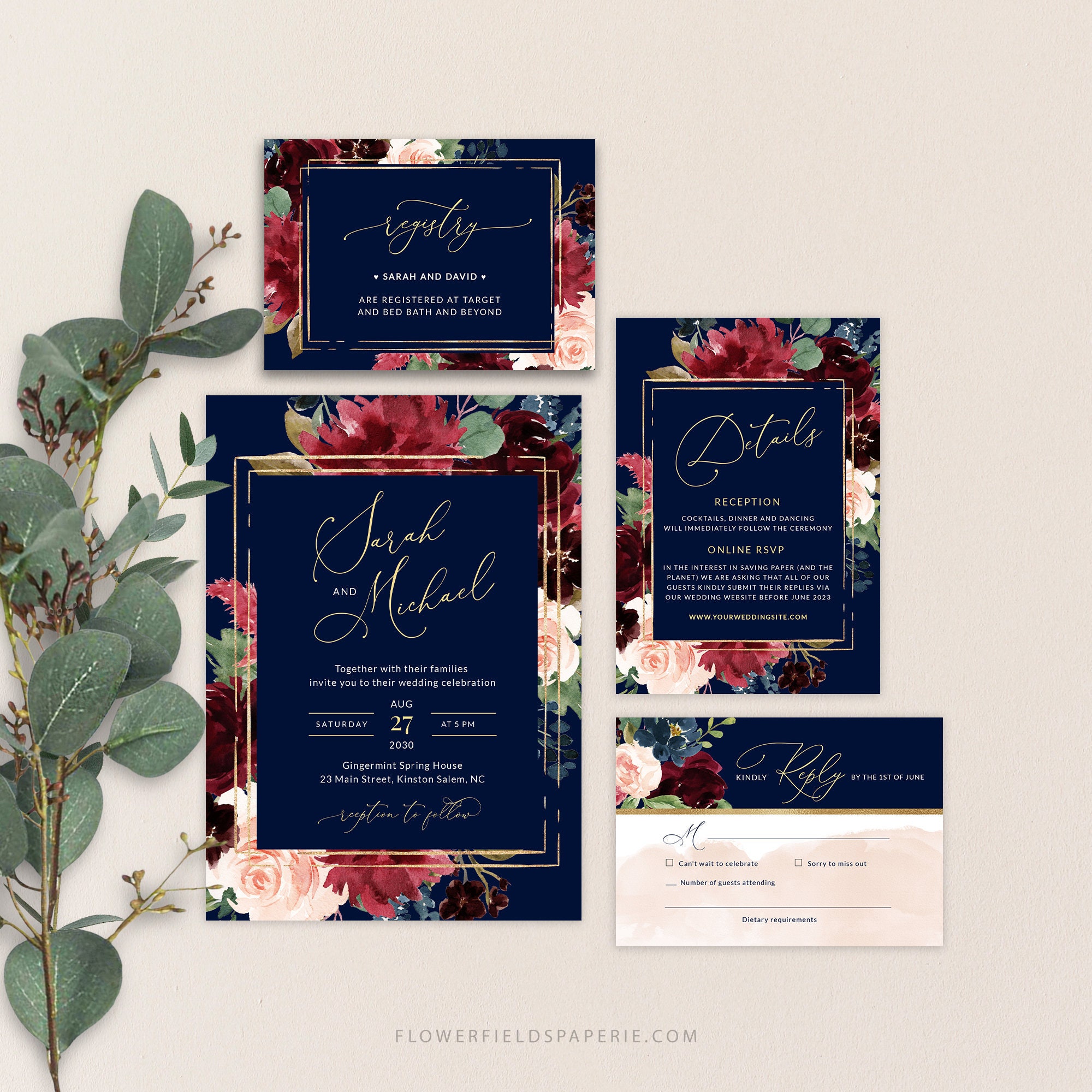 Template link included to help you format your invitations. 50 elegant floral geometric elegant frame invitation burgundy marsala gold large size 5x7. 31 elegant wedding invitation templates. Our files are ready made with professionally designed more.