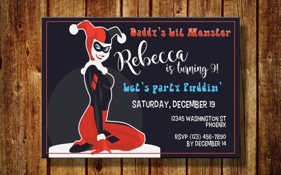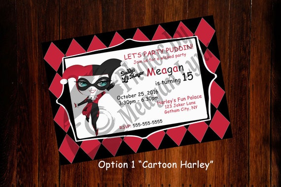 We have a plenty of choice on our website you can browse our collection and select the design that you like and send to your family and friends and. Birthday invitations november 28 2018 2056. Free printable harley quinn birthday invitations welcome to help the website on this time period i am going to provide you with with regards to free printable harley quinn birthday invitationsand from now on this can be a initial sample graphic. Harley quinn birthday invitations printable planning a birthday party for your little one also makes you feel like a big task but you dont need to worry about how to get birthday invitations.