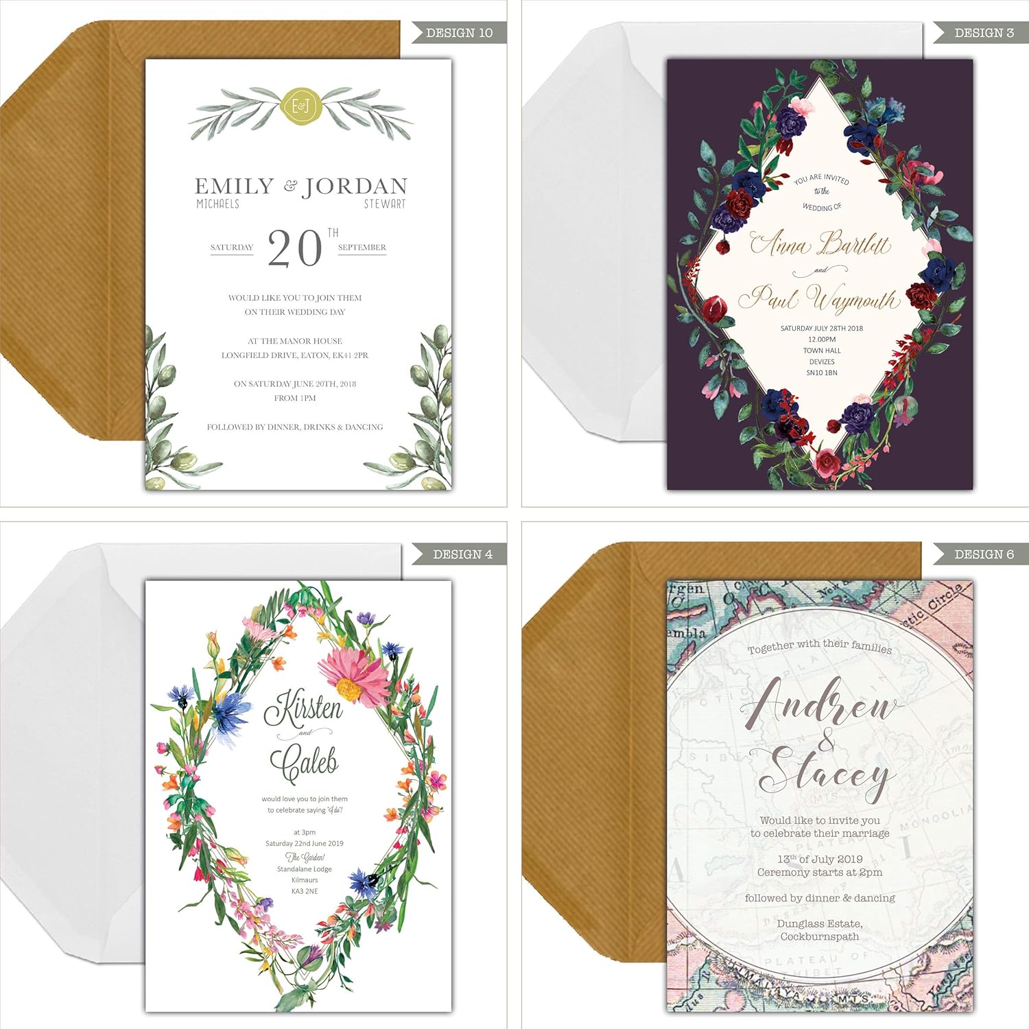 Wedding chicks has 35 wedding invitation templates in a variety of styles for both the traditional and modern bride. Print your invitation card in stunning high resolution. An easy to use tool lets you fully customize these printable wedding invitations by adding your own custom text with all the wedding details as well as change text colors. This handmade editable template features calligraphy.
