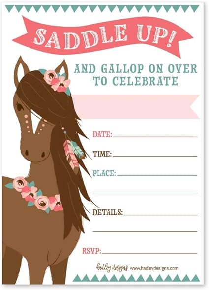 Now lets dig into all of the different options and types of horse birthday invitations on this page. Many digital invitations are available to print at home print at a photo center or even format for texting or emailing your guests. Printable horse birthday invitations free party invites for your horse themed birthday. Horse birthday invitations start as low as 200 so even if youre on a budget you can still get a unique and creative horse birthday invitation.