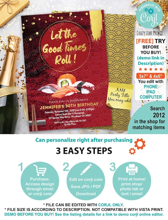 Add photos and text with our easily customisable templates. From shop thehappycatstudio. Which means you should make it excellent by installing the best decorations and likewise inviting the individuals you like. Sushi birthday invitation card seafood invite japanese party invitations printable invitations cutestudio4you.