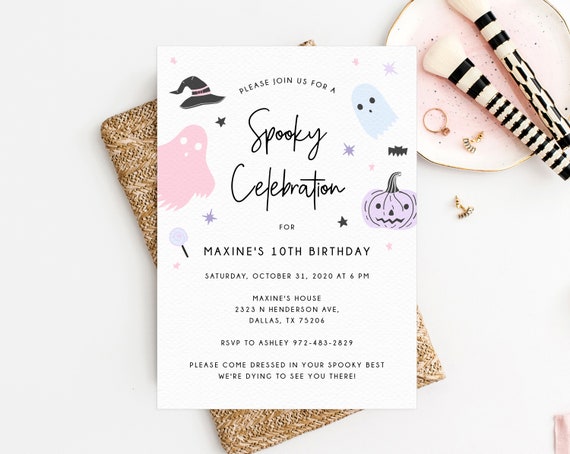 Dont worry all you have to do is select a halloween party invitation template from canva load it in the dashboard and customize it to your heart and spirits desire. Create a genuinely creepy halloween invitation card with scary images fearsome fonts clashing colors or a spiderweb border. Halloween is coming and we are so excited. Halloween birthday invitations templates you just have to choose the model you like the most remember that all our birthday party invitations templates are editable.