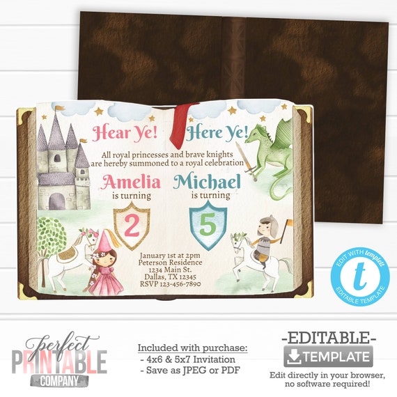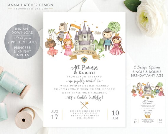 Printable princess and knight birthday party invitation prince and princess pink silver blue princesses and knights party invitation 5x7 customized for your child with their name age and party information. Choosing the suitable invitation card is a must for you. Browse our collection of knight party invitation template and create a stunning design even if youre not a designer. 23 awesome knight birthday invitation template photos when you are planning to hold a party like marriage ceremony anniversary birthday and different particular occasions you will invite some folks to return to your occasion.