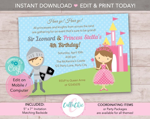 Princess and knightsl party invitation. Do not be worried about a screen because your invitations will probably become your screen. Aug 21 2016 instant downloads of knight party invitations. So you need to put together some invitation cards.
