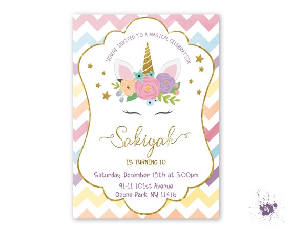 Unicorn Party Invitation Pink And White Birthday Invitation Etsy
