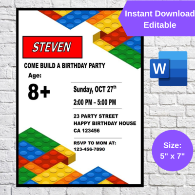 I tried to find a printable invite design i could purchase but none seemed to do justice to what i had in mind. You can use their free trial to craft your custom birthday party or baby shower invitation. Lego party invitations printable free lego batman party invitations free printable lego birthday party invitations printable free lego friends birthday party invitations printable free free printable themes are usually wanted by everyone these days. Your little guest will need to know the start time and finish times so the parents are aware when they are to pick their children up afterwards.