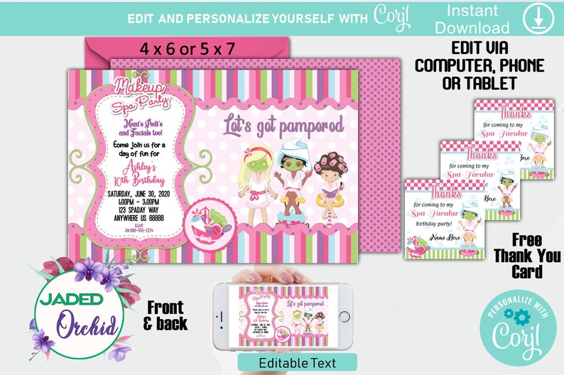 Pamper Party Invitation Make Up Party Ready For Any Little Girls Party Instant Download Digita Party Invite Template Pamper Party Party Invitations Printable