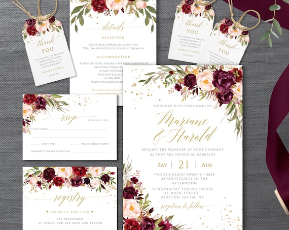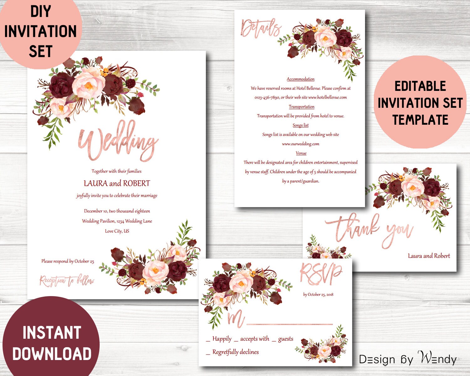 A digital store for printables do it yourselfeditable templates of invitations party labelsdecorssigns wall artroom decors. Burgundy wedding invitation template marsala wedding invitation suite wine wedding invitation editable invitation templett b82 blushpaperdesign.