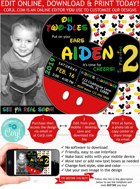 Editable Mickey Minnie Mouse Clubhouse Invitation Template Clubhouse Photo Invitation Clubhouse Birthday Invitation Instant Download By The Printable Occasion Catch My Party