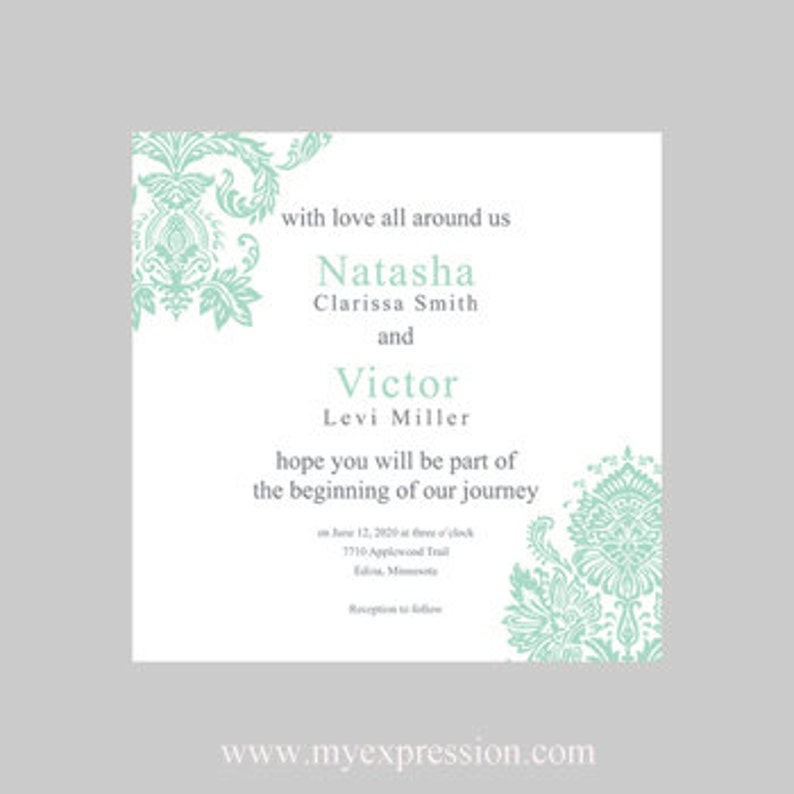 Art nouveau wedding invitation mint green wedding boho chic invitation vintage wedding invite art nouveau invite gildedswanpaperie. Featuring a chalkboard background and mint accents this design can be fully personalized with your wedding details and your names. From shop gildedswanpaperie. Shop zazzles luxurious range of mint green custom wedding invitations.
