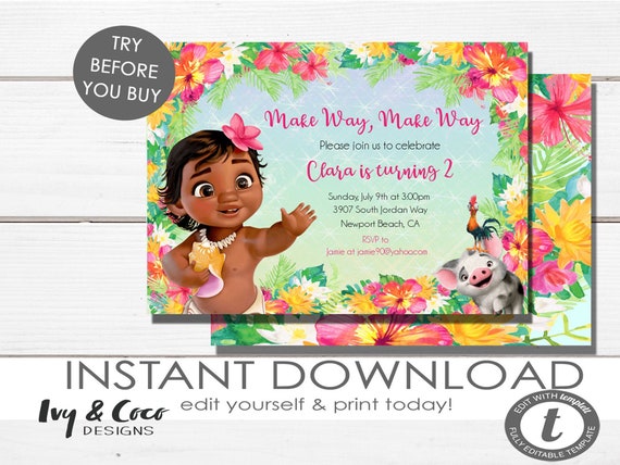 Moana invitation moana birthday invitation girl birthday invitation moana birthday party invitation printable colorfulmemoriebyann. Sale price 765 765 850 original price 850 10 off. Do not let your day be spoiled by a poor invitation card for that great party. All together wrapped in an ola.
