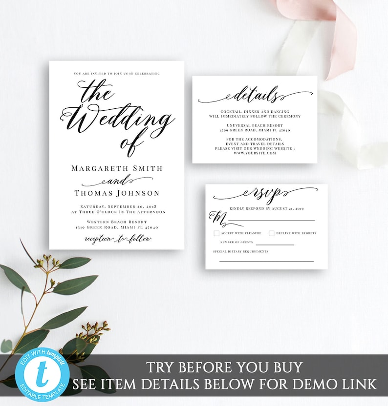 An easy to use tool lets you fully customize these printable wedding invitations by adding your own custom text with all the wedding details as well as change text colors. How to edit diy invitation templates. From classic to casual traditional to modern add your custom details in beautiful fonts and colors. Available in 5x7 inches bleed.