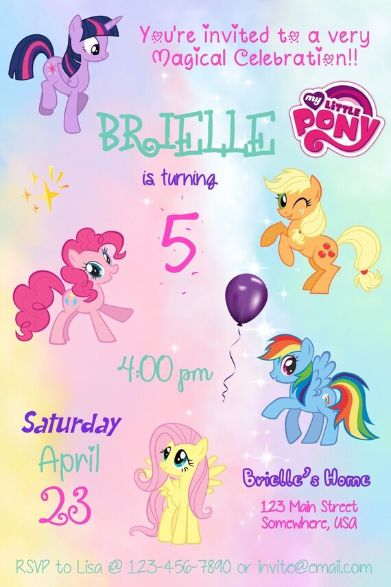 Free download customize and add your wording to match your party theme. My little pony birthday invitation printable my little pony invitations little pony party little pony invitation pony birthday invite magicdreamsdesign. This invitation comes in equestria background with so many cheerful happy expression. My little pony invitation my little pony custom birthday invitation personalized printable digital card upon purchasing you will receive a printable digital file in the form of a 300 dpi high resolution jpeg or pdf 4x6 or 5x7.
