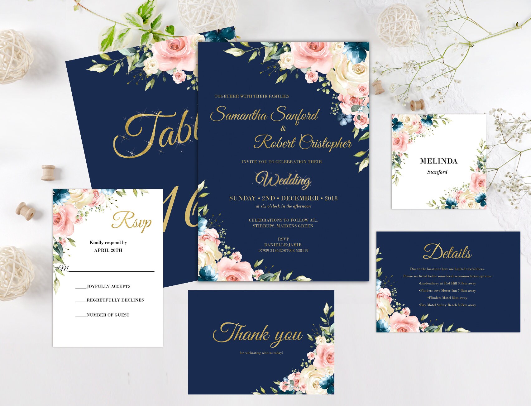 Wedding invitation template navy and gold wedding invitation printable wedding invite editable invitation calligraphy invite modern invite instant download once you have placed your order you will receive a link to edit your template online using the online software templett. Wedding invitation templates carolina. No waiting around. Looks pretty and pop.