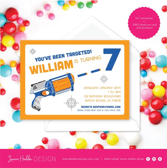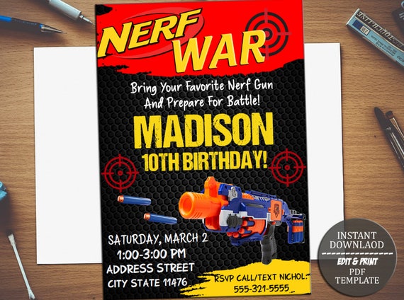 Nerf party etsy you searched for nerf party etsy is the home to thousands of handmade vintage and one of a kind products and gifts related to your search no matter what you re. Use these free printable nerf birthday invitations to let the rest of your team know that they are invited to the epic battlecelebration. Nerf gun party invitation templates. Free nerf gun party invitations printable welcome to help the blog site within this period well show you about free nerf gun party invitations printablenow this is the very first sample image.