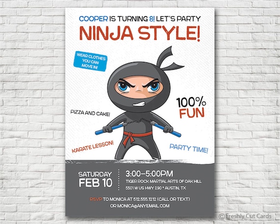 All of the files can be downloaded at the bottom of this post in 1 zipped filethe download will include the invitation cupcake toppers drink wrappers party favors memory game and bunting. Ninja birthday party invitations template free download and preview download free printable template samples in pdf word and excel formats. Ninja birthday invitation template free greetings island. The design is unique decorated with ninjas wearing black costumes.