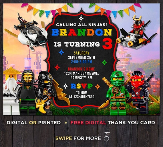Ninjago birthday invitation template free. Jpeg and pdf options 5 styles. Ninjago birthday invitation printable digital file. You can customize the card invitation templates to meet unique needs. I created this free printable lego ninjago birthday invitation set for your enjoyment.