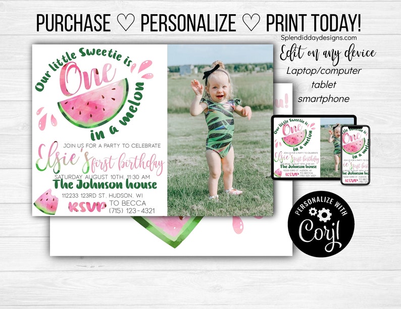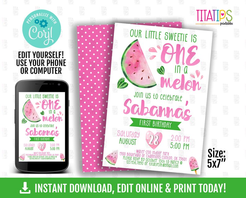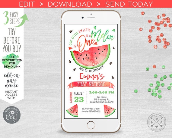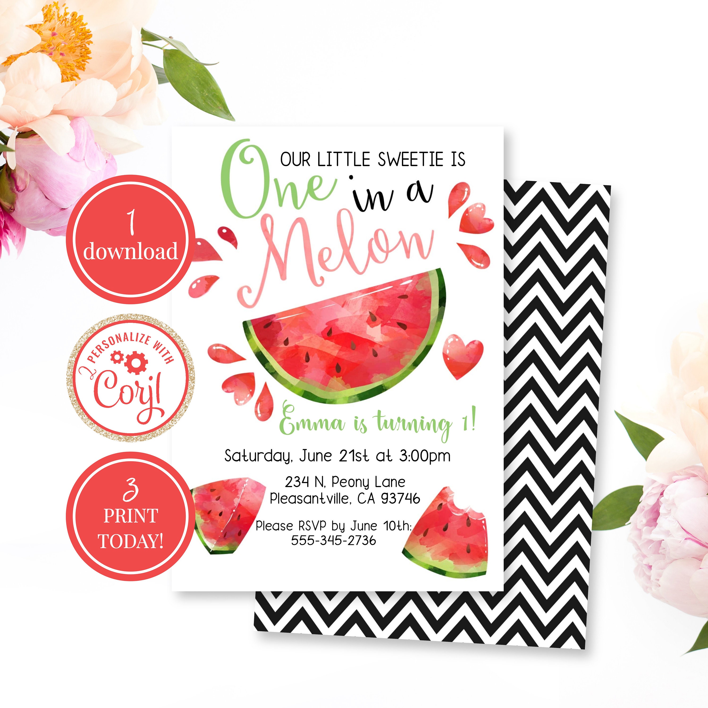 One in a melon birthday party invitation template watermelon invitation summer birthday girl first birthday editable template pink melon. Doing this could have a stronger affect and better results than merely sending out e mail messages or tagging your folks on a social. Watermelon first birthday party invitation editable template one in a melon birthday invite 1st birthday invitation girl birthday corjl 275 mossandtwigprints from shop mossandtwigprints.