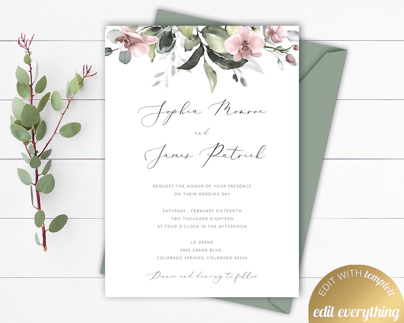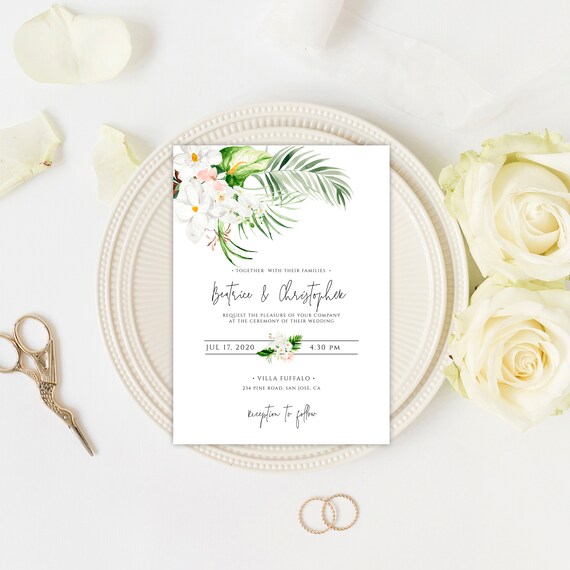 From classic to casual traditional to modern add your custom details in beautiful fonts and colors. See more ideas about orchid wedding invitations wedding invitations orchid wedding. White orchid wedding invitation template tropical wedding botanical wedding invitation suite greenery printable editable invite wt100 nevadesignshop. 5 out of 5 stars 342 342 reviews.