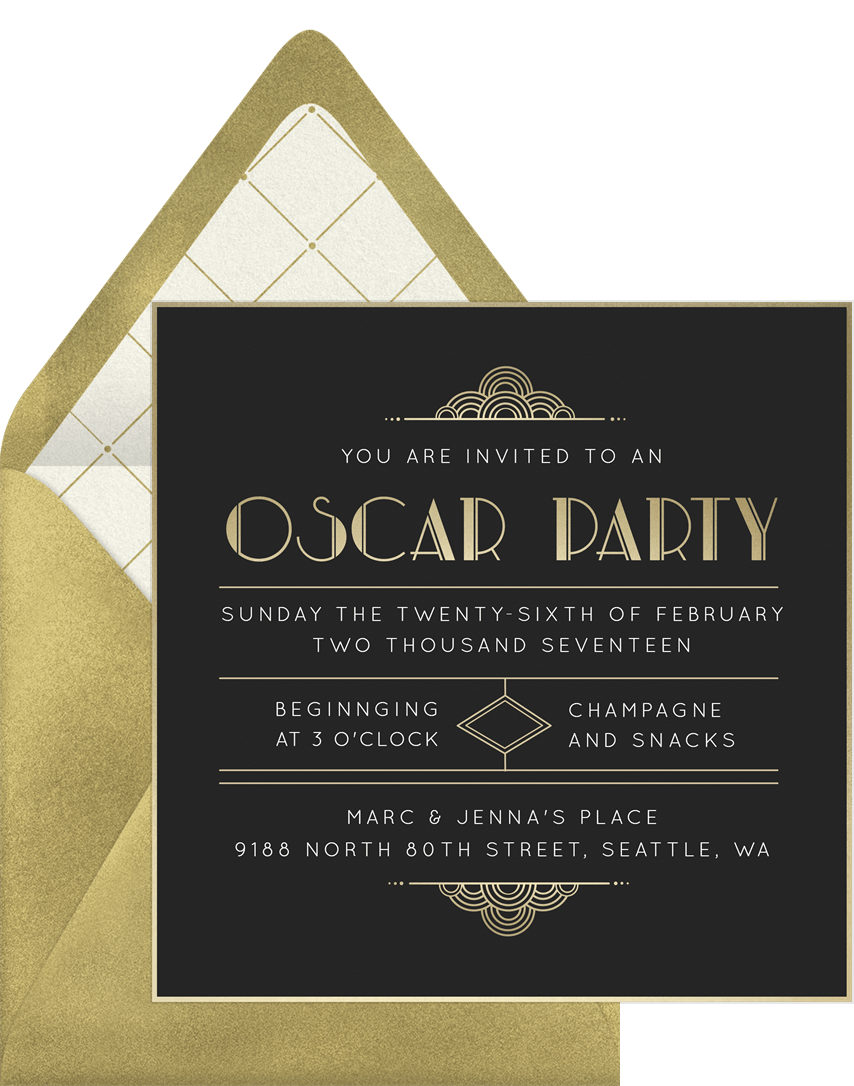Oscar party invitation template. We offer glamorous modern invitations that you can customize on punchbowl. Oscar party invitation 50th birthday invitation academy awards invitation printable oscar viewing party invites oscar invitation invites littlepinkelephant03. Tip junkie has over a thousand party printables and tutorials all with pictured tutorials to learn or how to make. Whether you opt for a sophisticated affair or just want to kick back in jeans and ogle at the dresses on the red carpet this template is sure to be a hit.