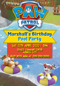 Invitation card 5in x 7in your invitations can be printed onto 85x11 white card stock from home save as a pdf can print 2 per page. From shop invitacionesdigital. Pool party invitation printable pool party invitation girl pool party birthday invitation swimming paw patrol invite digital invite chiquidesign4u. Along with this free customizable paw patrol invitation you can also sign up to receive other free paw patrol party printables like a birthday banner too.